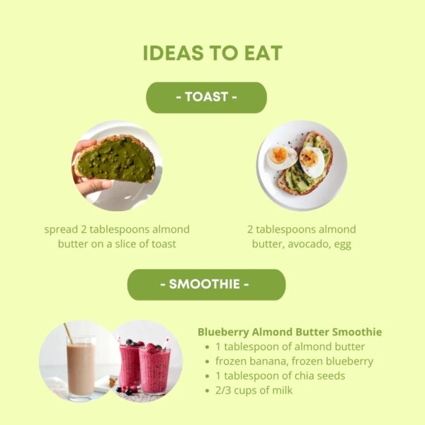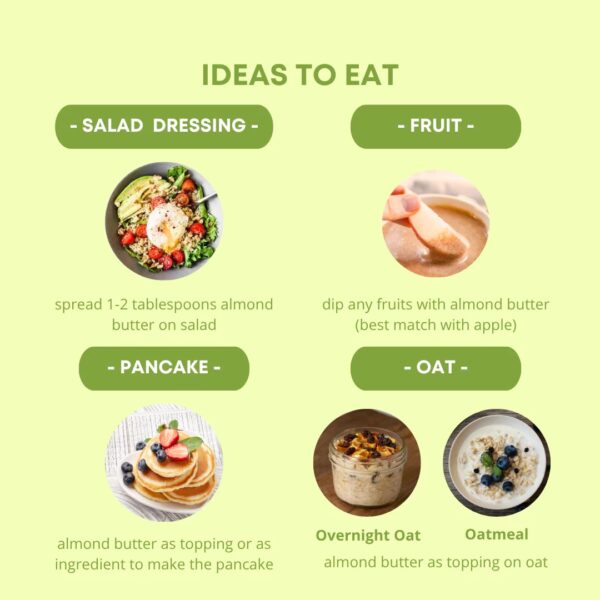 Suitable for spreading it on toasts, oatmeal, smoothies, salad dressing, granola, baking, fruits, veggie, yogurt etc.